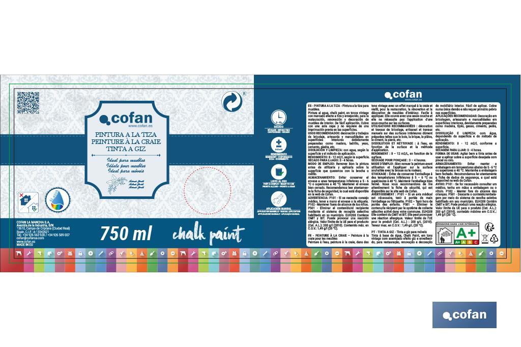 Pintura a la tiza o chalk paint especial para la restauraci￳n, renovaci￳n y decoraci￳n de muebles de madera. Proporciona un marcado efecto tiza para darle un toque vintage a la supeficie. Indicada para aplicar sobre muebles y objetos de interior, ya que cubre f£cilmente la superficie con tan solo una capa. Tambi←n es ideal para realizar trabajos de decoraci￳n, bricolaje, artesan■a y de manualidades en superficies debidamente preparadas como madera, ladrillo, yeso, cemento, piedra, etc. La pintura al agua es f£cil de aplicar y no requiere de una imprimaci￳n previa para obtener unos excelentes acabados. Tiene un rendimiento de 8-12 m2/litro. Recomendamos remover bien la pintura antes de utilizarla y aplicarla con una brocha o rodillo. Puedes lijar la superfice una vez pintada para crear un efecto desgastado o envejecido. Esta pintura se seca con rapidez. Chalk paint disponible en varios colores y en diferentes capacidades.